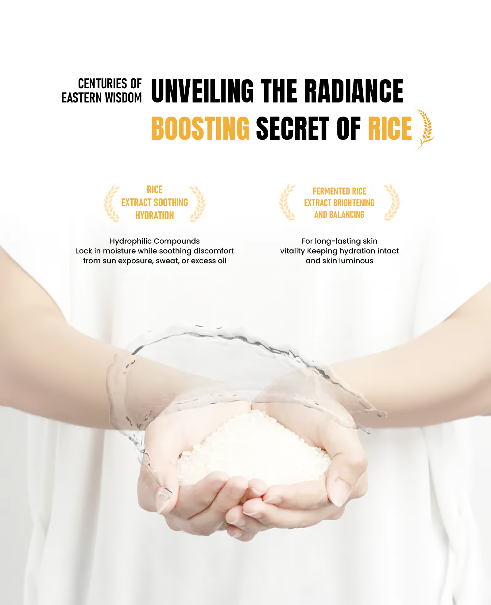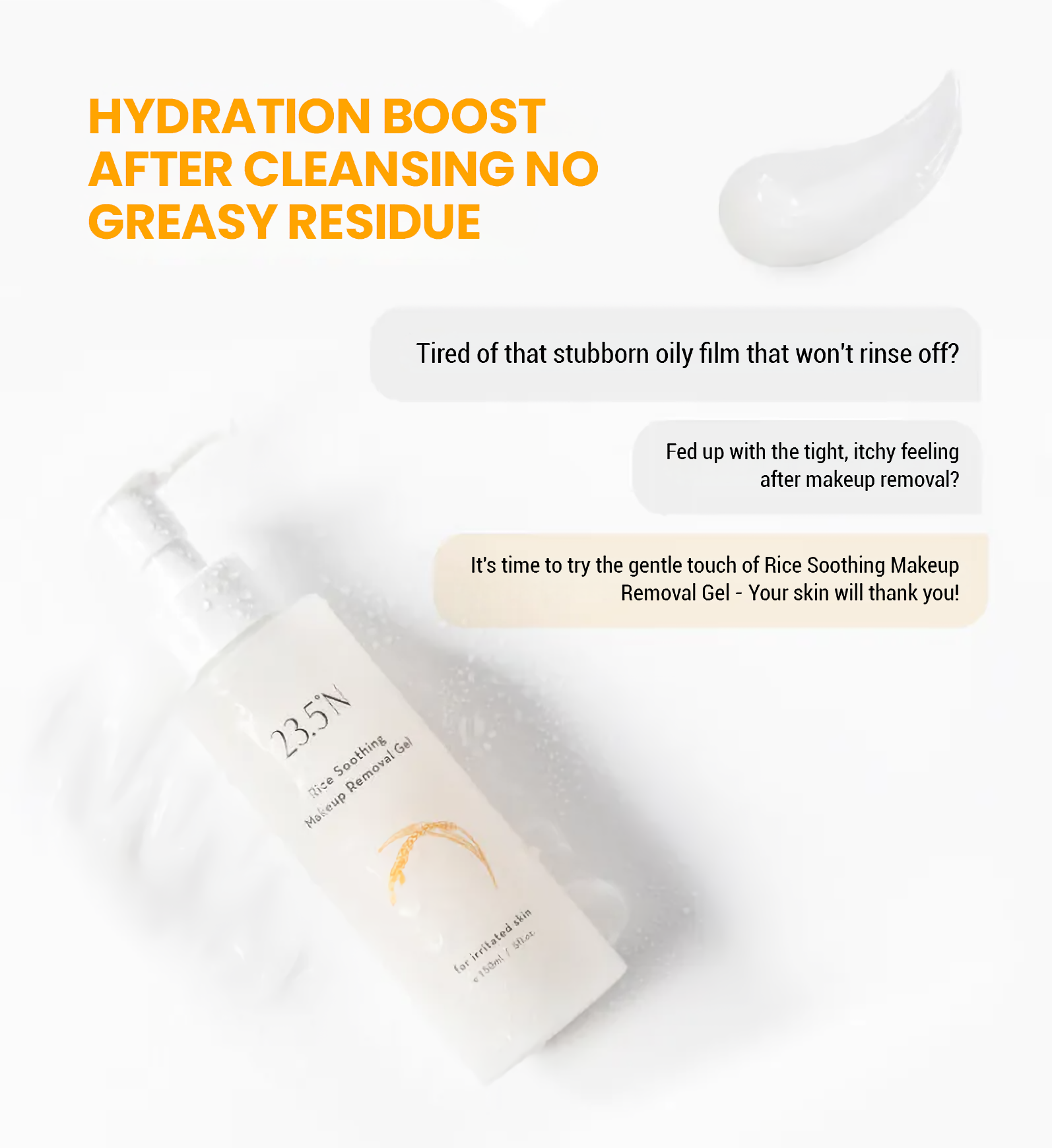 - Rice essence is combined with rice germ and rice bran oil extracts to relieve the discomfort caused by sensitive or problematic skin when removing makeup.